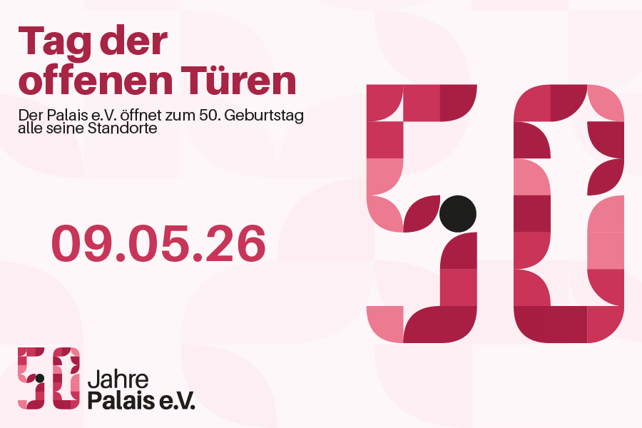 Samstag, 09. Mai 2026 – 11:00 bis 16:00 Uhr 50 Jahre Palais e.V.: Alle Standorte öffnen ihre Türen Der Palais e.V. feiert im Jahr 2026 sein 50‑jähriges Bestehen und lädt anlässlich dieses Jubiläums zu einem besonderen „Tag der offenen Türen“ ein....