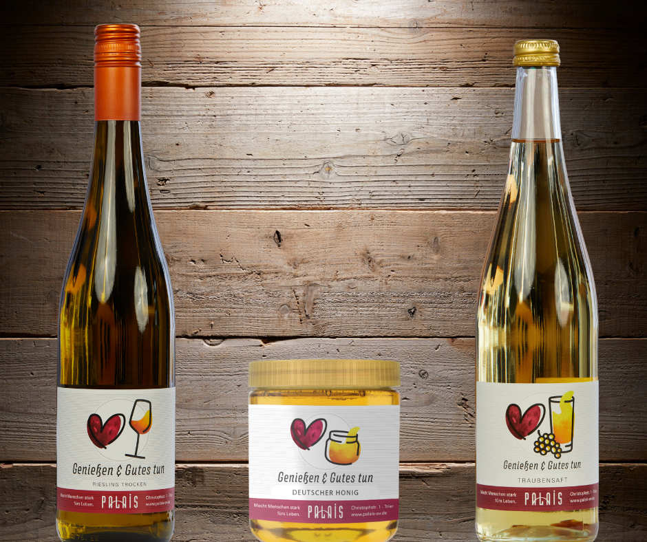 Ab sofort heißt es wieder: Genießen und Gutes tun! Drei besondere Produkte vereinen in diesem Jahr, was an der Mosel einfach zusammenpasst – Geschmack, Regionalität und Solidarität. Der Palais e.V. Trier startet mit dem Benefizriesling, dem Palais-Honig und dem neuen Charity-Traubensaft in die Genuss-Saison 2025. Der Erlös aller drei Produkte kommt wie immer dem Sozialfonds des Palais e.V. zugute und unterstützt Kinder, Jugendliche und Familien in schwierigen Lebenslagen – direkt, lokal und mit Herz.