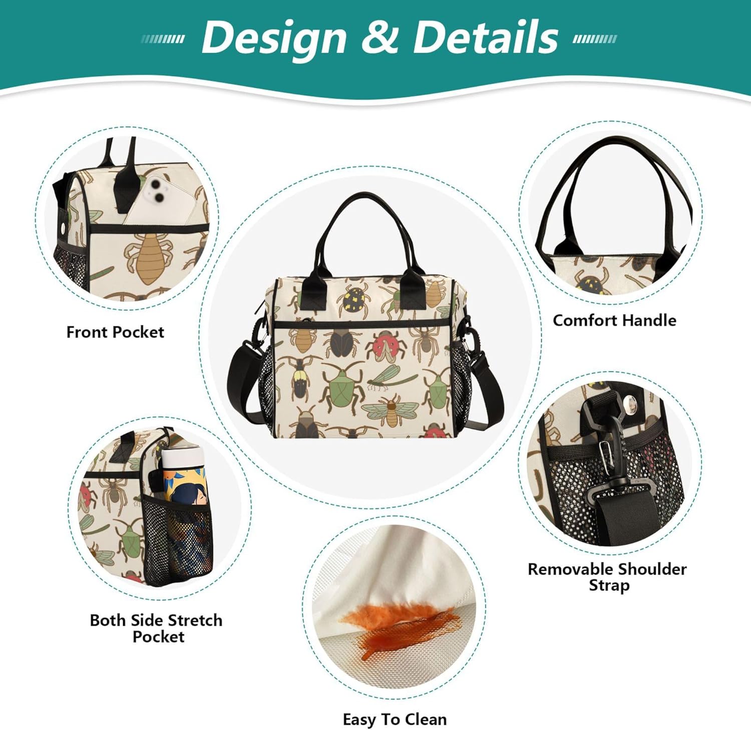 Glaphy LARGE REUSABLE LUNCH COOLER BAG Size: S: 10.6x5.5x11 in/27x14x28 cm, M: 11.4x6.2x11.8 in/29x16x30 cm Material: 100% polyester Inner: 5mm PE Foam Lining&PEVA Insulation ( BPA FREE) Closure type: Zipper Printing: vivid and personalized patterns, add some colors to your life Occasions: school, work, traveling, hiking, camping, trekking, cycling, gym, beach, outdoor activities STRUCTURE DESIGN 1 x main zipper pocket, 1 x front pocket, 2 x side pouchs Main pocket-keeps your sandwich, salad, snacks, drinks and fruits fresh, warm or cold Front pocket-put tableware, napkins, keys, cards, facial tissues, purse/wallet, phone and other small items Side pouchs-enough to fit water bottle and umbrella UPGRADED LUNCH BAG The shoulder strap are designed one the meal bag, which can be carried by hand or hung on the shoulder. it will free your hands. Easy to carry. MULTIPURPOSE&SPECIAL GIFT Roomy enough to hold meals, snacks, beverages, also a perfect gift for kids,adults, women, men, teen girls and boys. Leakproof and Waterproof Extra thick soft EVA liner and the heat-welded seams to guard against leaks and easy to clean. If sauce spills inside, just wipe it off with wet cloth or napkins. WASH SUGGESTION Partially scrub, dry clean, please do not machine wash, because it will destroy the PEVA inside the lunch box and lose the insulation effect.