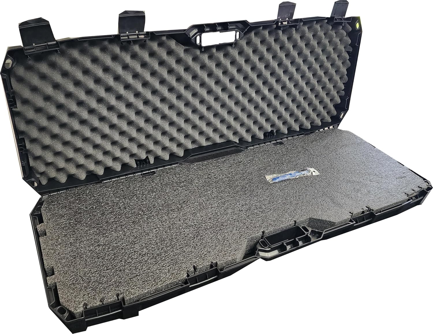 The Case Club Carry case with precut foam will fit items within 39.5" in overall length, as well as more in the extra pockets. Four built in latches ensure nothing gets in or out of the case, and four padlock holes are built right into the case for added security. The foam insert is closed cell high grade polyethylene which can be wiped clean if wet or oily. The foam is perforated above and below the main cutout so you can remove the foam as needed to customize the insert for your unique items. The lid holds convoluted (egg crate) foam specifically engineered to hold everything down firmly. This case is compact, organized, and uses all available space to the fullest. Protect your investment, buy Case Club.