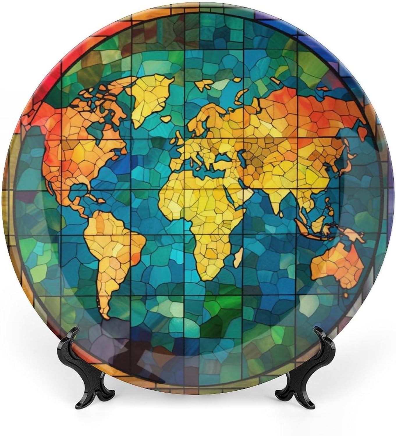 GOKAYS DECORATIVE PLATEDo you feel that your table is monotonous? Then use our decorative plate to add a little fun to the monotony of life.FEATURESSIZE - 8 Inch diameterMATERIAL - CeramicDESIGN - Watercolor Stained Glass Design USA FlagPACKAGE - 1 x Ceramic Decorative Plate, 1 x Stand, 1 x PothookWHY CHOOSE GOKAYS DECORATIVE PLATES?ADVANTAGEAs Manufacturers We Follow Current Trends and Bring You the Latest Home Fashion. No dye substance harming the health of you and your family, and more than 1300 high temperature fired in the kiln, never fade color. Ideal for placement at home or in the office. Traditional porcelain making technology, fine workmanship. It is a good gift for family and friends.CONVENIENT TO USEOur decorative plate rack for display has 2 ways to use, you can just place the bracket base on a flat surface first, and then put the plate on it, also you can stick the provided pothook at the back of the plate, and then stick the plate on the wall, you can choose the suitable installation method according to the actual situation.OCCASIONOur ceramic plate is a perfect decorative and collection for any niche, table, or mantle at your home. Perfect for your office, home, living room, dining room, playroom, kids room, kitchen, cafe, study, studio, club, bar, and others.IN A SURPRISE FOR YOUR FAMILY AND FRIENDS!It's a perfect gift for any person in your life. You can give it directly to your lover as Mother's Day Gift/Father's Day Gift/Birthday Gift/Christmas Gift/Valentines Day Gift/Anniversary Gift/Wedding Gift/Housewarming Gift/New Home Gift.Start with our funny decorative plate, refresh your rooms!