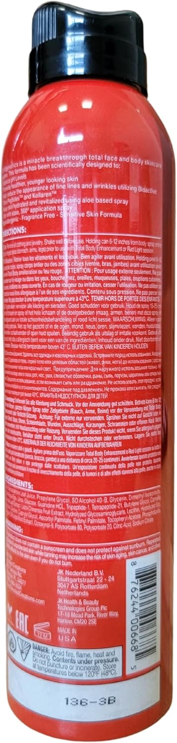 Devoted Creations COLLAGENETICS PREP SPRAY (5 ounce) Restore and Renew Activated Peptide Formula, Step 2 - Red Light Therapy Hypoallergenic BOV Spray Moisturizer: 2 of 4 Step System Collagenetics is a miracle break-through, total face and body skin care system. COLLAGENETICS BOV SPRAY is step two of this new innovative regime. Spray the light, non-greasy formula on your entire body following exfoliation and prior to Red Light Therapy or the application of Steps 3 and 4. All of these formulas have been scientifically designed to work in conjunction with each other to help erase the appearance of aging and take your skin back to its youthful look. Ideal to use as the foundation of your daily skin care regime, they have also been formulated to work with Red Light Therapy for optimum results. Together, they are designed to reduce the appearance of fine lines, wrinkles, and aging. The BOV SPRAY is a fragrance free clear spray that will revitalize the skin and help it to maintain its ideal levels of natural moisture. Hypoallergenic and fragrance free, it is designed even for those with sensitive skin.