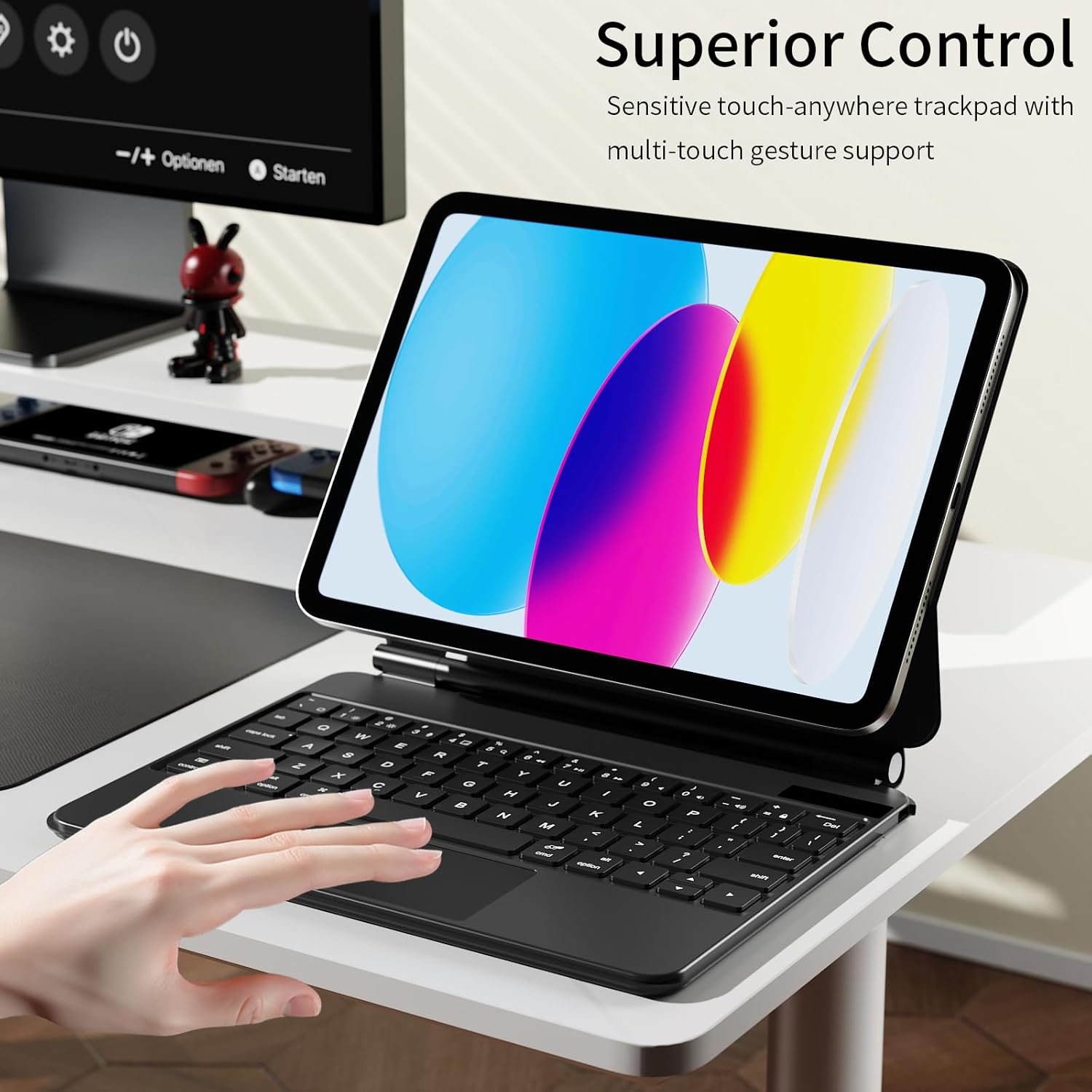 KVTVOU Magic Keyboard Case for iPad 10th Generation 10.9 Inch 2022, Springy Backlit with Multi-Touch Trackpad, Magnetic Floating Cantilever Stand-Magic Keyboard for iPad 10.9", Black