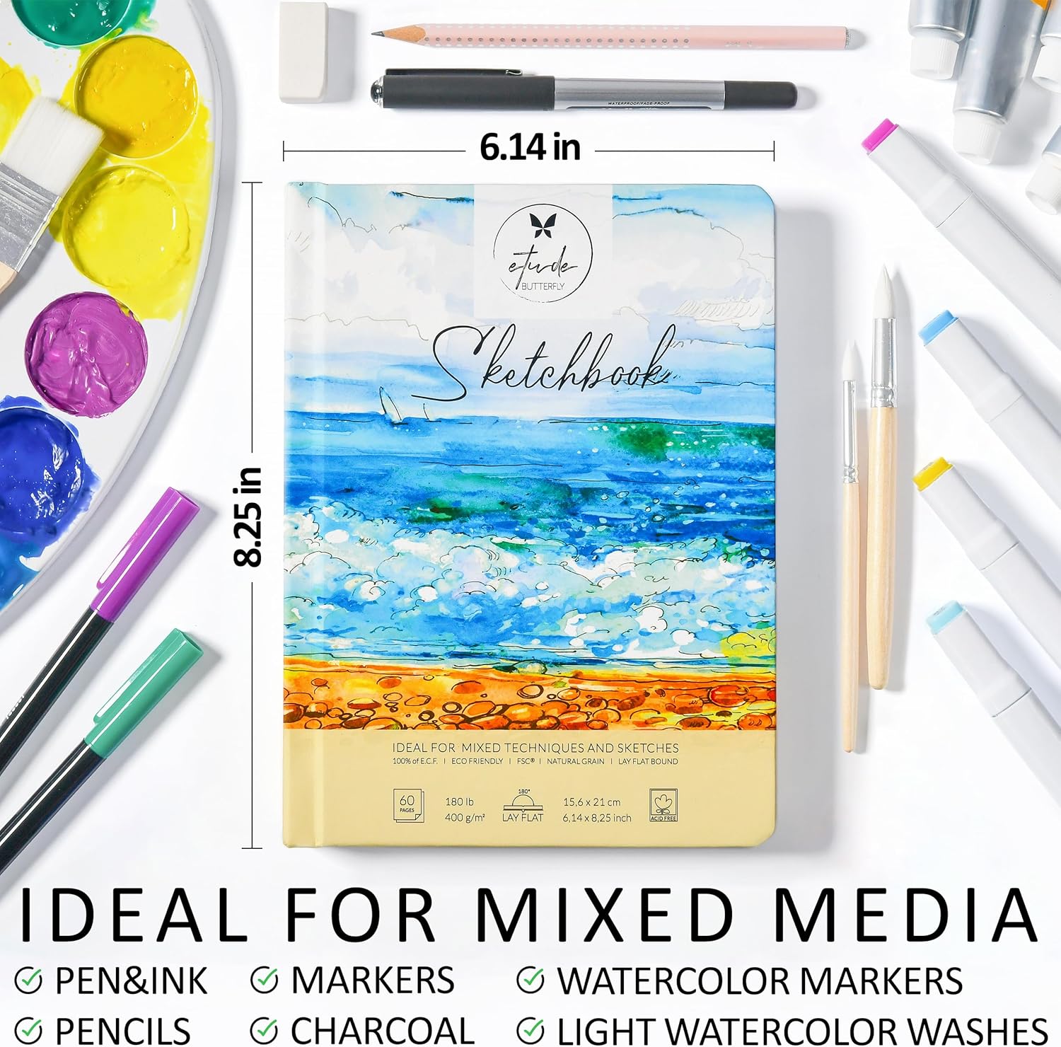 Foto Zona gladly presents Lay Flat Sketchbook for Mixed Media to you: High-quality dense paper – at least 4 times denser and thicker than the most sketchbooks have, so you can get creative with the tools. None of them will come through to damage your other works while still getting excellently absorbed. Made from FSC certified 100% E. C. F. Cellulose and is fully eco-friendly. Versatility and safety – the sketchbook is easy to carry with oneself thanks to its compact dimensions. It is also possible to use it as a sketch pad because of the cover's properties – you'll be prepared when the muse strikes, anywhere and anytime! Also, the rounded corners ensure that even children will have a simpler and safer time with it! No spiral binding, only LayFlat – the LayFlat binding technique allows for an extremely comfortable and convenient drawing experience! No longer are you restricted from drawing near and at the page's edge. In fact, there is no inner edge, as any two given pages are flawlessly connected and that way form a larger area for your artistic pleasure. No seams – no bleed-through, no pages falling out. Thanks to the aforementioned LayFlat binding technique there are no seams nor strings. The sheets sit firmly and strongly, not to mention their thickness, so an uncareful move won't cause a page to rip and come off. Your works will always be at hand, safe and sound.
