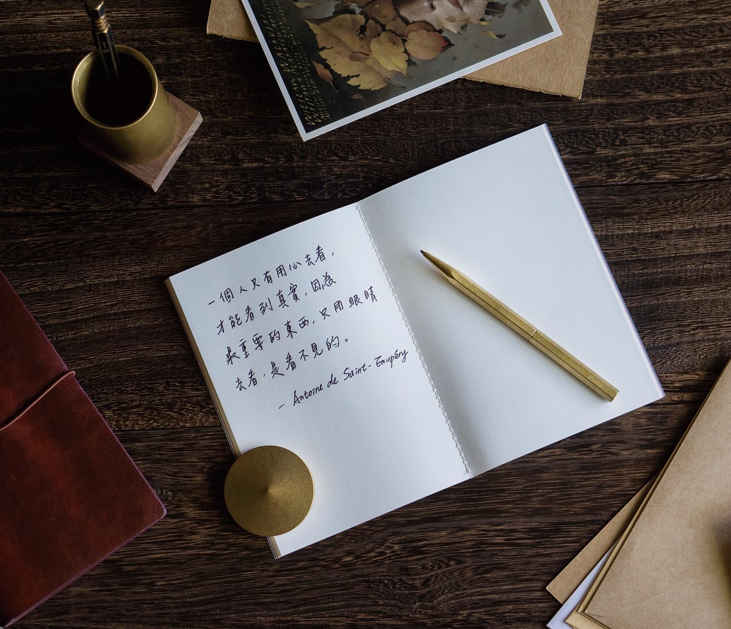 The YSTUDIO ballpoint pen stands out from other brands with its personalized aging process. The brass develops a unique patina over time, allowing each pen to tell a story, evolving with the user while maintaining durability and elegance.